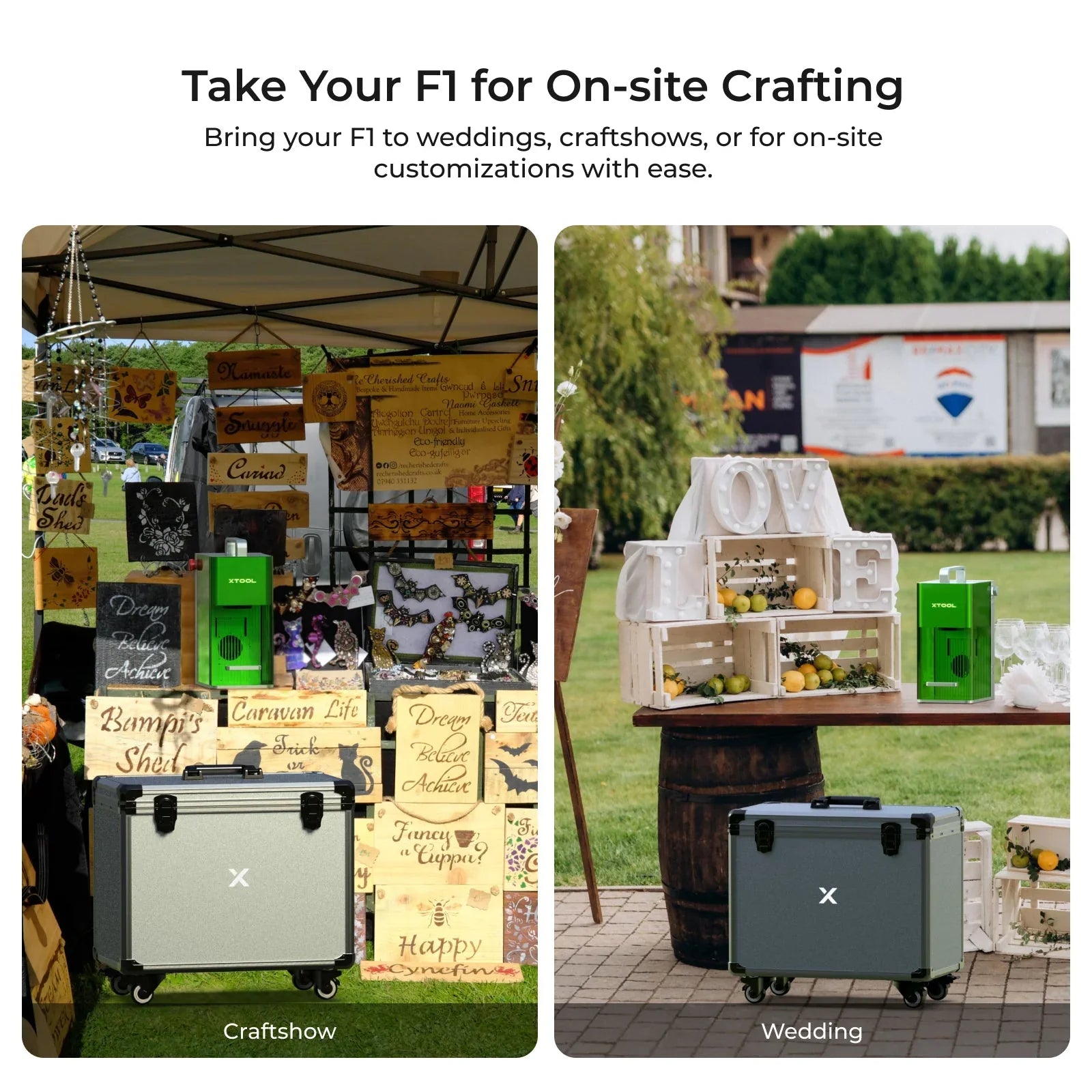Equipped with omni-directional wheels and a retractable handle that extends up to 87 cm, this rolling case offers easy maneuverability and adjustable height for comfortable transport. Ideal for on-site crafting events such as craft shows and weddings, the case allows you to bring your F1 engraver wherever your projects take you, ensuring both protection and convenience.