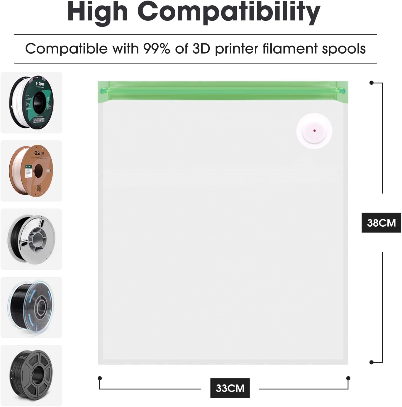 - Reusable Humidity Card: The included humidity indicator card is highly sensitive and reusable, providing a clear visual of the filament's storage conditions.