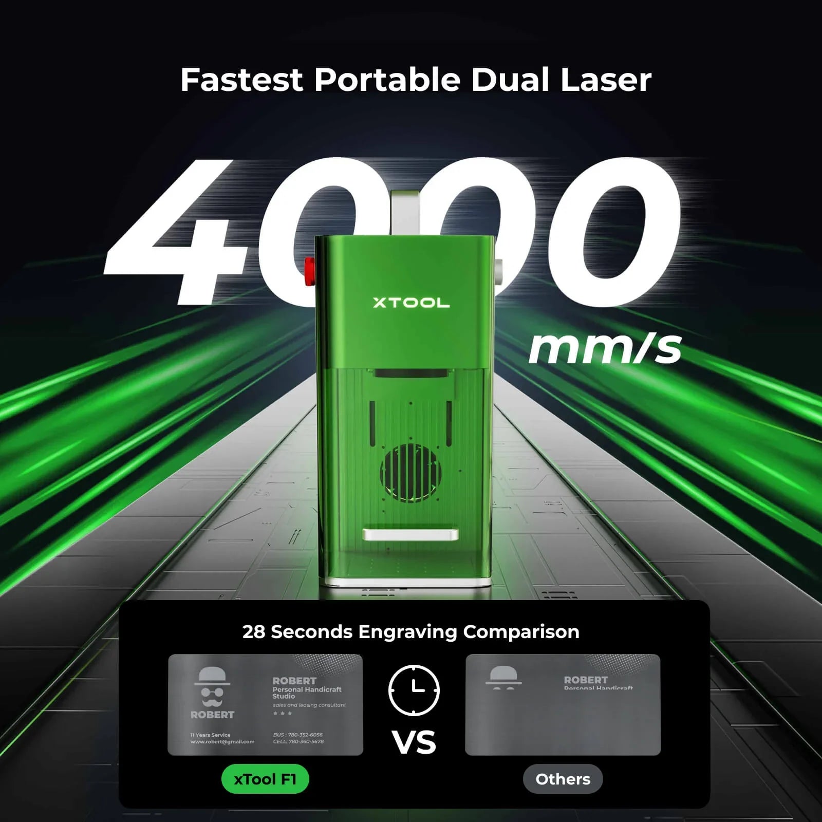The xTool F1 is a compact and portable laser engraver that combines a 10W 455nm diode laser with a 2W 1064nm infrared laser, enabling precise engraving across a wide range of materials. Its high engraving speed of up to 4,000 mm/s and movement accuracy of 0.0019 mm make it an ideal tool for educational settings, makerspaces, and classrooms, allowing students and educators to explore design and fabrication concepts efficiently.