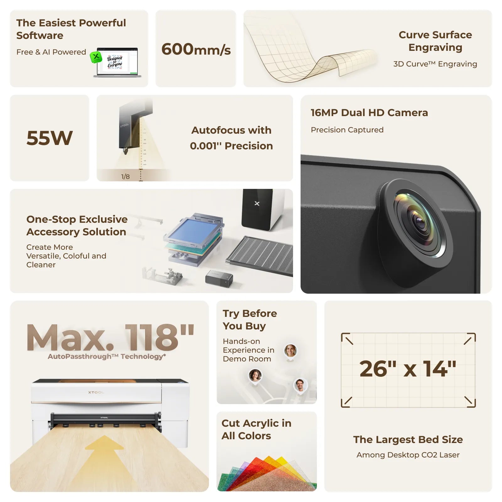 - 23.6" × 12" Bed Size: Larger than other desktop CO2 lasers for maximum efficiency.